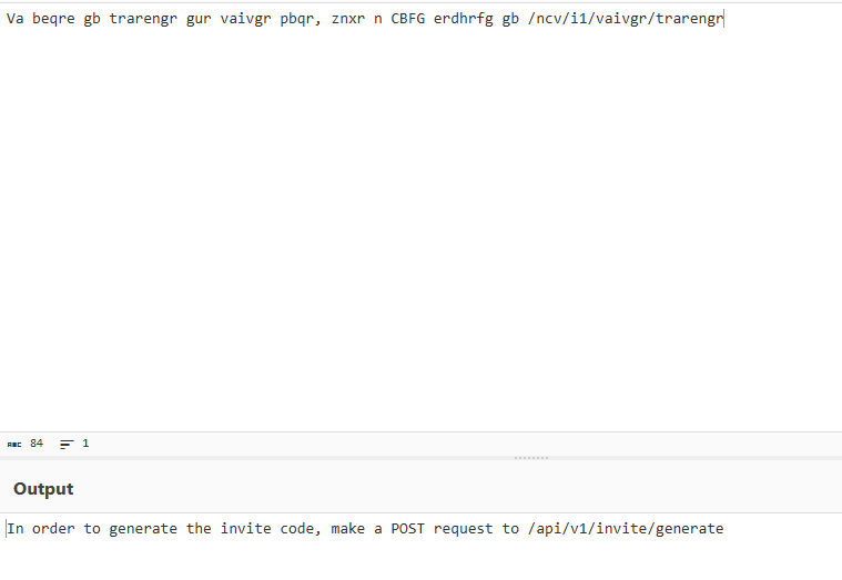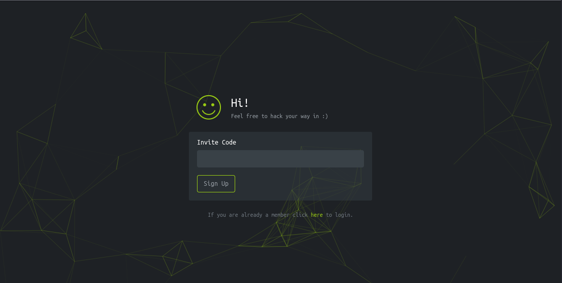 In this challenge, I started with an Nmap scan that revealed open SSH and HTTP ports. The HTTP service displayed a Hack The Box-themed site requiring an invite code for registration. By analyzing and deobfuscating a JavaScript file, I discovered an API endpoint. Using a POST request and ROT13 decryption, I obtained an invite code, registered, and logged in.