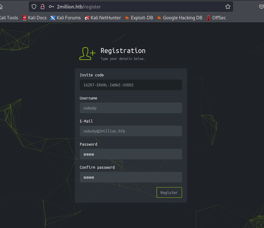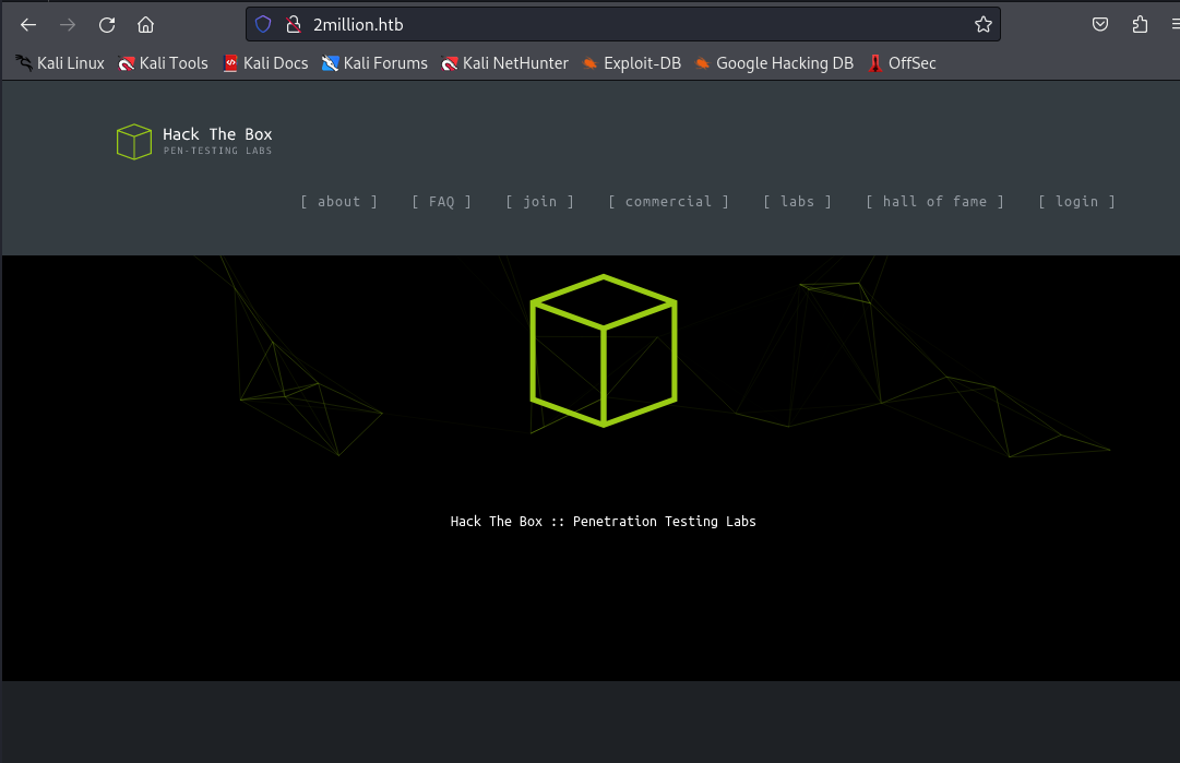 The website http://2million.htb/ is Hack the Box themed website where you can only register or login if you are invited with an invitation code.